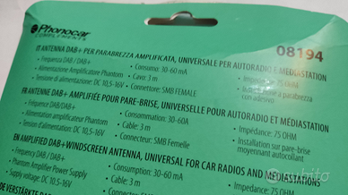 modello 08194 Phonocar antenna da vetro amplificata Attiva Dab a vetro 90° con connettore smb nuova