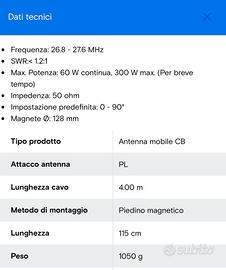 Vendo antenna midland magnetica C1020. LC65 Nuova in confezione Questa compatta CB-antenna ad alte prestazioni è dotato di una base magnetica e può essere rapidamente e facilmente come antenna CB su un autocarro o auto fuoristrada camion camper Spina PL Costo listino 74,00 euro Toyota nissan mitsubishi suzuki 4x4 offroad