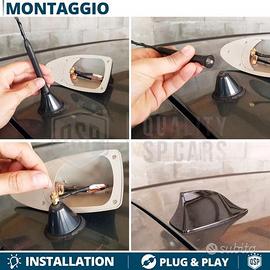 Kit di Trasformazione da Antenna Classica in Antenna Pinna di Squalo PER MINI Vera Ricezione AM-FM-DAB, In Resina di Abs Nero - Materiali d' eccellenza " Qualità Professionale " - Verniciatura Elettrostatica " Resistente Ag. Atmosferici " - Estetica e Funzionale " Vera ricezione/ Look Sportivo " - Facile Installazione REQUISITI DI COMPATIBILITÀ: MINI R50 R52 R53 MINI R56 MINI F55 F56 MINI CLUBMAN R55 F54 MINI PACEMAN R61 1) Antenna ad Avvitamento 2) Base Antenna MASSIMA: CM 10 X CM 6 X H CM 5, ( Per essere ospitata all' interno del corpo dell' antenna ) ISTRUZIONI DI MONTAGGIO: - Svitare l'attuale antenna ad avvitamento - Pulire e lavare accuratamente e SCRUPOLOSAMENTE la superficie dell'auto - Applicare la pellicola biadesiva nella parte sottostante dell'antenna - Avvitare il cavo dell'antenna Pinna Squalo per mezzo dei due bulloni forniti in dotazione, dove era posizionata l'Antenna classica. - Rimuovere la pellicola e Attaccare la Pinna al tetto dell'auto effettuando la giusta pressione per far aderire L'adesivo. - Per un Fissaggio perfetto Utilizzare un Phon Termico da Carrozzeria per far si che il Bi adesivo Faccia presa Sull'Auto. IL PACCO INCLUDE: - X1 ANTENNA PINNA SQUALO+ BIADESIVO - X1 FILETTATURA - X2 BULLONI DETTAGLI TECNICI: - Ricevitore Segnale Radio: AM/FM/DAB - Temperature di Lavoro: -40° C/ + 65° C - Materiale: ABS Pressofuso - Dimensioni: 17cm x 7cm x 7,5 - Resistenza a Pressione: 62kg - Peso: 63 Gr (Singolo) - Colore: Nero Metallico Semi-Lucido - Confezionamento: Scatola di Cartone Originale - Condizioni: Nuovo PER INFO CONTATTARE AL 3927091031 ANCHE LINEA WhatsApp OPPURE VIA E-MAIL: rtautoitalia2018@libero.it CONSEGNA: - Effettuiamo Spedizioni 24-48H in TUTTA ITALIA - Ritiro in Sede con Possibilità di Visionare il Prodotto - Vendiamo solo Articoli Nuovi PAGAMENTI: - PayPal - Con Carta - Bonifico Bancario - Alla Consegna con Contrassegno