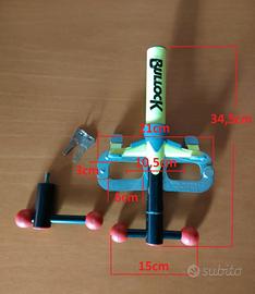 Antifurto meccanico marca Bullock modello Excellence tipo X per bloccaggio pedali auto. Fornito con le sue chiavi ed un accessorio per diverso montaggio. Perfettamente funzionante. Per le misure vedere l'ultima foto. Ritiro a cura dell'acquirente.