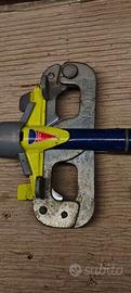 Vendo storico antifurto meccanico per auto marca Bullock , modello originale blocca-pedali. Si tratta di uno dei sistemi di sicurezza passiva più efficaci e intelligenti sul mercato: grazie al meccanismo a molla, si installa in pochi secondi bloccando il pedale del freno o della frizione, impedendo la guida del veicolo. Essendo un modello meccanico robusto, non richiede batterie né installazioni elettroniche complesse. Universale per la maggior parte delle autovetture. Incluso nella confezione: • Dispositivo Antifurto Meccanico Bullock. • Coppia di chiavi originali incluse (2 chiavi totali). Condizioni: L'oggetto è usato ma in ottime condizioni funzionali . Il meccanismo di blocco e sblocco con chiave è fluido e testato. Esteticamente presenta normali segni d'uso (piccoli graffi sulla vernice gialla/blu e sulla parte metallica, come visibili nelle foto di dettaglio), che non compromettono l'efficacia del dispositivo. Struttura in acciaio super resistente. Venduto per inutilizzo.