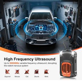 Protegge il vano motore grazie a onde sonore alternate e luci LED lampeggianti che disturbano il sistema nervoso dei roditori.