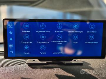 Display con Dashcam integrata per rendere l'auto compatibile con Wireless Apple Carplay/Android Auto - Adatto a qualsiasi auto, si collega all'impianto audio dell'auto anche via frequenza radio! - Autoradio portatile (marca Alondy) - Display da 9.3 pollici IPS Touch Screen - DashCam 2.5K frontale e posteriore (oltre che assistenza al parcheggio) - GPS - Siri/Google Voice Control - Bluetooth - AUX