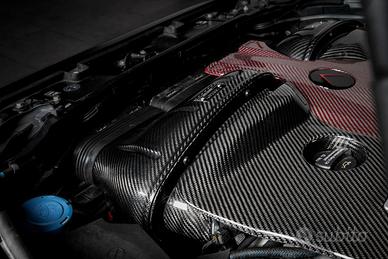 Aspirazione in Carbonio Mercedes G63 AMG W463 W464 – Eventuri Carbon Fiber Intake System Adatta per W463, W463A, W464 con codice motore M177.Guadagno di prestazioni di picco: 21whp, 12ft-lbGuadagno di prestazioni di fascia media: 28whp, 32ft-lbL'aspirazione G63 AMG W464 Eventuri è realizzata con precisione in fibra di carbonio preimpregnata, con componenti lavorati a CNC e filtri ad alto flusso progettati su misura. Questa aspirazione stabilisce un nuovo punto di riferimento per i guadagni di prestazioni nel segmento aftermarket per questa piattaforma. Utilizzando lo spazio aggiuntivo sotto il cofano, abbiamo aumentato significativamente il volume di aspirazione, ottenendo un'impressionante portata d'aria del 25% maggiore rispetto agli airbox OEM, il tutto mantenendo le alimentazioni di aria fredda originali.Il volume maggiore dell'aspirazione facilita anche un percorso del flusso d'aria più fluido, consentendo ai turbo di aspirare aria con una resistenza ridotta. Ciò si traduce in un ciclo di lavoro wastegate ridotto e, in definitiva, migliora le prestazioni complessive.Per accogliere le maggiori dimensioni dell'aspirazione, abbiamo riprogettato il coperchio del motore per includere uno scudo termico stampato su misura dotato di isolamento in silicone ad alta temperatura. Questo design innovativo protegge il coperchio dal calore eccessivo generato dai turbo e dal collettore.Il sistema di aspirazione Eventuri G63 AMG garantisce prestazioni leader nel settore, offrendo al contempo miglioramenti acustici e visivi per un'esperienza di guida e di possesso arricchita.listino 3891,80 euroPREZZO SCONTATO 3680 euro inclusa spedizione