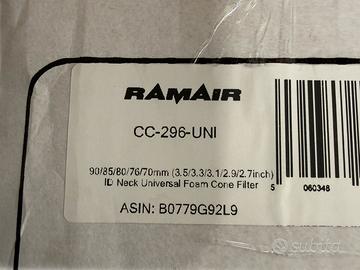 Misure: Curva da 80mm 45 gradi + curva da 80mm 90 gradi + filtro RamAir uni 90/70mm
