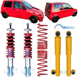 SPEDIZIONE INCLUSA 435 ASSETTO A GHIERA REGOLABILE COILOVER + 2 Supporti Ammortizzatori Anteriori PER: Fiat Cinquecento, 170 dal 1991-1999 0.7 - 0.7i - 0.9 - 0.9 i.e - 0.9 i.e S - 1.1 Sporting compreso lo Sporting - Fiat Seicento / 600, 187 dal 1998-2010 0.9 - 1.1 - Elettrica escluso Elektra - - - Abbassamento Anteriore: 35-70 mm Abbassamento Posteriore: -40mm Fisso Senza regolazione in altezza, abbassamento fisso di circa -40mm - Peso massimo assale anteriore: 610 kg Peso massimo assale posteriore: 630 kg - - 4 Ammortizzatori a GAS con ghiera filettata ( 2 Ammortizzatori Anteriori + 2 Ammortizzatori Posteriori ). 4 Molle specifiche per l'assetto a ghiera regolabile che a volte sono gi installate sugli ammortizzatori. 1 Chiave per la regolazione delle ghiere. 1 Certificato di omologazione TUV. + 2 Camber Regolabili Anteriori - UNITATECHNIX UNIEVOGW EVOGWFI03 2x202818 - uni14090 -