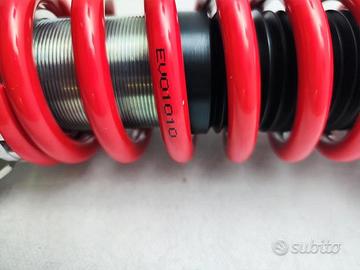 SPEDIZIONE INCLUSA 335 ASSETTO A GHIERA REGOLABILE COILOVER PER: - Abarth Grande Punto, Punto, Punto Evo, tipo 199 dal 2007 - - - Alfa Romeo Mito, tipo 955 dal 2008 - 0.9TwinAir / 0.9 / 1.4 / 1.4TJet / 1.4BiFuel / 1.4MultiAir / 1.4Turbo MultiAir / 1.4TB / 1.3D MultiJet / 1.6JTDM - - Fiat Grande Punto, tipo 199 dal 2005 - 1.2 / 1.4 / 1.4LPG / 1.4 Natural Power / 1.4 16V / 1.4T-Jet / 1.4 Abarth / 1.3D MultiJet / 1.6D MultiJet / 1.9D MultiJet - Fiat Punto Evo, tipo 199 dal 2009-2012 1.2 / 1.4 / 1.4LPG / 1.4 Natural Power / 1.4 16V / 1.3D MultiJet / 1.6D MultiJet - Fiat Punto, tipo 199 dal 2012 - 0.9Twin Air Turbo / 0.9BiFuel / 1.2 / 1.4 / 1.4BiFuel / 1.4 Natural Power / 1.4MultiAir / 1.4Turbo MultiAir / 1.4 Abarth / 1.3D MultiJet - - Opel Adam, tipo SD dal 2012 - 1.0 / 1.2 / 1.4 - Opel Corsa D, tipo SD dal 2006-2014 1.0 / 1.2 / 1.4 / 1.6T / 1.3CDTI / 1.7CDTI - Opel Corsa E, tipo SD 2014 - 1.0 / 1.2 / 1.4 / 1.4T / 1.6T / 1.3CDTI - - Abbassamento Anteriore: 35-70 mm Abbassamento Posteriore: 35-70 mm - Peso massimo assale anteriore: 1000 kg Peso massimo assale posteriore: 850 kg - - 4 Ammortizzatori a GAS con ghiera filettata ( 2 Ammortizzatori Anteriori + 2 Ammortizzatori Posteriori ). 4 Molle specifiche per l'assetto a ghiera regolabile che a volte sono gi installate sugli ammortizzatori. 1 Chiave per la regolazione delle ghiere. 1 Certificato di omologazione TUV. -1 UNI TA-TECHNIX UNITATECHNIX UNIEVOGW EVOGWOP081 EVOGWOP08 uni01055