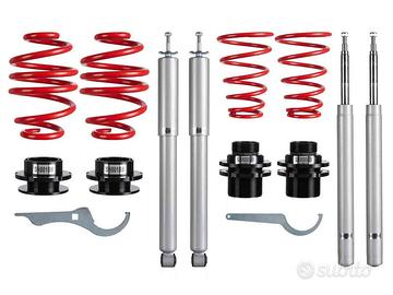 Gli assetti a ghiera filettati della ditta Tedesca JOM migliorano la stabilità e la tenuta di strada la taratura è fissa e impostata per un utilizzo stradale / sportivo della vettura, senza togliere nulla al comfort di marcia. La regolazione sugli assetti regolabili JOM si effettuano direttamente sull'auto, secondo il gusto estetico personale, i prezzi sono molto competitivi e la qualità è Tedesca ed è garantita.