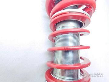 SPEDIZIONE INCLUSA 4 Ammortizzatori a Ghiera Regolabili in Altezza modello COILOVER che si possono installare su: Fiat 500 / 500C 312 Cinquecento 170 Coupe 175FA Punto / Punto Cabriolet I 176 176C II 188 III Grande Punto Evo 199 Seicento 187 Berlina Cabriolet - Ford C-Max DM2 Escort V VI ALL GAL VII ALL GAL/AAL/ABL/AFL Classic GAL Fiesta III GFJ GFJ-Facelift IV JAS/JBS V JD/JH Focus I DAW/DBW DFW II DA DB III DYB Galaxy WGR KA RTB RU8 Mustang-GT S197 Puma ECT Berlina Hatchback Tre volumi Cabriolet - Honda Civic / CRX EG2,EH6 V EJ1,2,6 EG3-6 EG8+9, EH9 VI MB8-9 ,MC1-3 EJ6-8, EM1 MA8-9,MB1-6 VII EM2 EP1, EP2, EU5, EU7, EU6, EU8 ES4, ES5 Integra R DC2 Jazz II GD S2000 AP1 Berlina Hatchback Coupe Aerodeck - Mazda 121 III JASM/JBSM 2 DY 3 BK 323F / 323S VI BJ MX-3 EC MX-5 I NA II NB RX7 FD RX8 SE - Mercedes Benz Serie 190 W201 Classe C W202 W203 S202 S203 CLK C208 C209 A209 Classe E A124 C124 W124 W210 SL E129 Berlina Combi Coupe Cabriolet - Mini Mini / R50 - Mitsubishi Lancer EVO IV - VI CN/CP Lancer EVO VII - IX CT - UniAssetto UniFISSO UniGhiera UniTATECHNIX TA TECHNIX - UNINUOVOMISTO UNINUOVOGHIERA3 - uni14061 -
