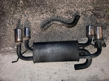Scarico sportivo Asso racing (made in italy) per Audi a3 8p 1.9 tdi da anno 2003 compreso di tubo per collegamento con parte centrale dello scarico (come in foto), Uscita 4x da 76MM. Condizione e' usata, funzionante e plug & play con gommini e supporti originali dell'auto.