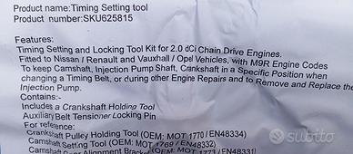 Vendo valigetta completa con attrezzi per sostituzione catena distribuzione per Nissan, Opel e Renault con motore M9R. Nuova mai usata.