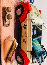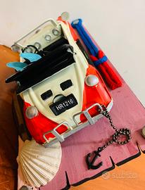 Diorama da scrivania mis. 30 x 15 " MAGGIOLINO IN SPIAGGIA" auto della AGORÀ in latta riproduzione di auto in metallo e dipinta a mano, posta su tavola in legno lavorata e dipinta con molte applicazioni fatti a mano applicazioni che richiamano l'estate. Lo cedo per euro 75,00 con consegna a mano solo in zona dove loca l'articolo oppure si può spedire con accurato imballo e più euro 9,90 a vostro carico per spedizione tracciabile e con corriere di Poste Italiane.