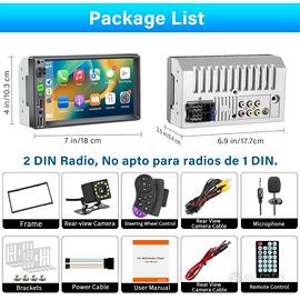 Autoradio 2 DIN Compatibile con Carplay e Android Auto, Autoradio Bluetooth da 7 pollici Touchscreen,Supporta Bluetooth vivavoce/Mirror Link/FM/Telecamera Posteriore/USB/AUX/EQ/MIC