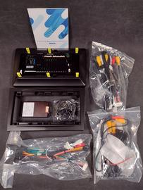 Il contenuto della confezione prevede tutto l'occorrente per effettuare i cablaggi elettrici con i cavi originali dell’autoveicolo, inclusi il connettore di alimentazione, un modulo CANBUS, una telecamera 1080p, un’antenna GPS, un microfono per le comunicazioni telefoniche e una guida cartacea schematica. Sul retro si trovano gli ingressi per l’alimentazione e l’antenna GPS, nonché i connettori USB e alcune prese RCA audio-video per sistemi di collegamento supplementare.