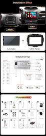 Funzioni Multipul Bluetooth 5.0 - Chiamate in vivavoce, musica BT, sincronizzazione della rubrica, Schermo diviso. Collegamento specchio. Sintonizzatore radio (FM/AM). per la riproduzione di video HD 4K 1080P. Pannello colori chiari/sfondo/logo stivale/lingua regolabile. Supporta DAB +, Funzione panoramica a 360° ,TPMS, OBD2, DVR ecc., Hanno bisogno di elementi opzionali con cui lavorare.