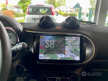 Autoradio specifiche per Smart for two - for four 453 dal 2015 al 2020 con funzione Gps con mappe incluse, Bluetooth radio, supporto completo di eventuali comandi al volante.