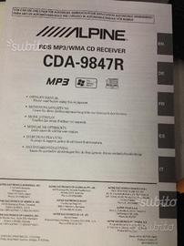 Vendo Autoradio Alpine CDA 9847R in ottime condizioni con scatola originale, manuale istruzione, custudia frontalino.