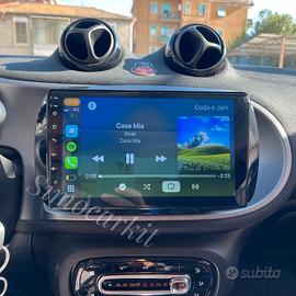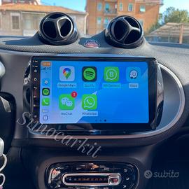 Applicabilità marca: Smart Info e ordini: 3514758814 (anche WhatsApp) Autoradio android auto carplay wireless stereo radio car tablet infotainment progettata per integrarsi perfettamente nella plancia della Smart Fortwo e Smart ForFour. La costruzione specifica e lo stile del pannello frontale permettono un’integrazione perfetta nella strumentazione di bordo mantenendo le funzioni originali della vettura. Display touchscreen IPS antiriflesso 9 pollici con visibilità anche alla luce del giorno, ideale per navigazione, musica e gestione delle applicazioni. Questo sistema sostituisce l’autoradio originale offrendo un infotainment moderno con funzioni multimediali avanzate. Grazie al sistema Android è possibile scaricare applicazioni direttamente dal Play Store, utilizzare navigazione con Google Maps o Waze, ascoltare musica su Spotify e utilizzare molte altre app direttamente dal display. Il sistema supporta Apple CarPlay e Android Auto wireless, permettendo di collegare lo smartphone senza cavi e utilizzare applicazioni utili durante la guida. Supporta vivavoce Bluetooth per chiamate in sicurezza, streaming musicale, WiFi per internet e radio FM con sistema RDS. Interfaccia fluida e semplice pensata per l’utilizzo quotidiano. Installazione Plug & Play Nessuna modifica all’impianto originale Tutto il necessario per il montaggio incluso Compatibilità comandi al volante Compatibile con Smart Fortwo W453 — 2014, 2015, 2016, 2017, 2018, 2019, 2020 Smart ForFour — 2014, 2015, 2016, 2017, 2018, 2019, 2020 Smart Fortwo C453 / A453 — 2014, 2015, 2016, 2017, 2018, 2019, 2020 Importante: non compatibile con veicoli dotati di navigatore originale di fabbrica. Codice prodotto: A0001800509 Caratteristiche principali Display touchscreen IPS antiriflesso 9” Sistema Android veloce e stabile Apple CarPlay wireless integrato Android Auto wireless integrato Vivavoce Bluetooth con microfono integrato Navigazione GPS tramite applicazioni WiFi in