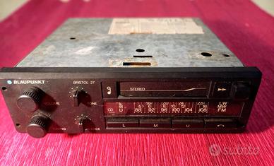 Autoradio vintage del 1988 marca BLAUPUNKT modello Bristol 27 per auto d'epoca, PERFETTAMENTE FUNZIONANTE (disponibile video di funzionamento). Con radio FM e lettore di cassette, senza slitta. Dimensioni: (LxAxP) 185 x 60 x 180 mm. Per altre delucidazioni chiamate il 3487146039. Inserzionista con 100% Feedback positivi su altre piattaforme. Si astengano i perditempo perchè non avranno risposta. Questa è una vendita tra privati, con esclusione di garanzia e con la formula "visto e piaciuto". L'oggetto è venduto "così com'è" e non è prevista nessuna restituzione.