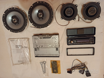 Vendo autoradio usato ma in ottime condizioni,causa cambio auto,con confezione originale integra,modello SONY GT series CDX-GT414U con entrata usb,entrata aux,lettore CD-R/RW,100 db+,audio device AAC/MP3,24 bit DAC,PRE SUB,EQ3 stage2 con due casse Pioneer TS-G10321, 200 watt max,30 watt norm.,due casse Kenwood KFC-E1765 peak 300 watt,rated 30 watt.