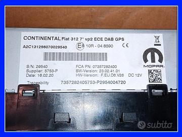 VENDO Autoradio Originale DAB Multifunzione Bluetooth CONTINENTAL MOPAR / FIAT codice 07357282400 ( visibile in foto l'etichetta identificativa ) , per modelli 500 dal 2020 in poi .