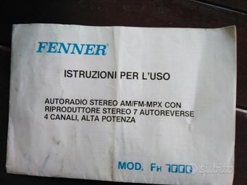 A) Autoradio Fenner mod. FX9200, funzionante, buona potenza, in buone condizioni, ancora con la sua scatola imballo originale e libretto istruzioni, data di acquisto: febbraio 1990. Prezzo richiesto: 120€. B) Autoradio Fenner mod. FH7000, estraibile, funzionante, buona potenza, con equalizzatore, in buone condizioni, con relativo libretto istruzioni, data di acquisto: maggio 1986, manca la scatola imballo originale. Prezzo richiesto: 100€. I prezzi s'intendono per consegna a mano (preferibile), in caso di spedizione +13€. Contattare per ulteriori informazioni o dettagli.
