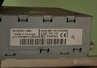 Vendo autoradio originale Blaupunkt modello 843 per Lancia Ypsilon (2003–2010). ✅ Funzionante prima della rimozione ✅ Buone condizioni estetiche (normali segni d’uso) ✅ Plug & Play (installazione senza modifiche) ✅ Completa di carrello e viti 🎵 Caratteristiche: Lettore MP3 Radio FM/AM Ingresso AUX (posteriore) 🔧 Compatibilità: Lancia Ypsilon 2003–2010 ⚠️ Nota importante: Lo stereo è sprovvisto di codice di sblocco (smarrito). Acquisto consigliato a chi sa recuperarlo oppure per uso ricambi. 💡 Ideale come ricambio originale o sostituzione dello stereo di serie. 💰 Prezzo interessante proprio per questo motivo 📦 Ritiro in zona 📩 Contattami senza problemi per info o altre foto