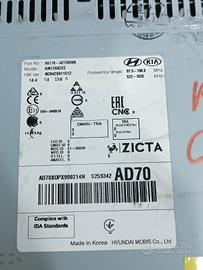 Autoradio lettore cd bluetooth 2017 kia ceed 96170