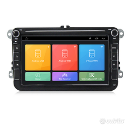 Prodotto nuovo Sistema operativo ANDROID Display 8 pollici, touch screen capacitivo Mantiene i comandi al volante Bluetooth: memorizzazione rubrica, ricerca per numeri e lettere, registro chiamate in entrata e uscita Viva voce, microfono incorporato e microfono esterno in dotazione WI-FI incorporato (si può collegare tutte le reti wi-fi anche a quelle dei telefoni) Funzione MIRRORLINK, (riprodurre il display del telefono sull'autoradio) Multi lingue incluso l'italiano Google Play Store preinstallato, è possibile scaricare le applicazioni come Facebook, Instagram, ect. Supporta tutti i formati video Uscita audio 4x50w Uscite audio RCA anche l'uscita per il subwoofer Funzione RDS (visualizza i nomi delle stazioni) Ingressi video telecamera retromarcia e telecamera anteriore. DUAL ZONE, si può ascoltare la musica con il navigatore in funzione Navigatore con le mappe aggiornate incorporato, includono gli avvisi audio e video per autovelox, telecamere, semafori, ecc. Compatibile con le vetture: Golf 5 2004-2008. Golf Plus 2009-2013. Golf 6 2009-2013. Polo 2009-2013. Scirocco 2008-2013. Passat 2005-2013. Jetta 2005-2013. Tiguan 2006-2013. Touran 2003-2013. Sharan 2010-2013. Sagita 2004-2011. Caddy 2005-2013. Eos 2006-2013. Amarok 2010-2013. Multivan T5 2010-2013. Seat Toledo 2004-2015. Seat Leon 2005-2013. Seat Alhambra 2010-2015. Seat Altea 2004-2012. Skoda Octavia II / III 2004-2011. Skoda Fabia 2011-2013. Skoda Yeti 2004-2009. Skoda Roomster 2006-2010. Skoda Limousine 2004-2006. Skoda Combi 2004-2006. Skoda Octavia 2009-2012. Skoda Octavia Combi 2004-2006. Skoda Fabia Combi 2004-2009. Spedizione in tutta Italia con pagamento alla consegna.