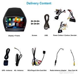 Autoradio navigatore specifica HYUNDAI facile da installare senza modifica al impianto della sua vettura,mantiene le funzioni originali della vostra auto.
