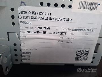 autoradio opel corsa e del 2015 ns. riferimento 281/25 l'autoradio viene fornita senza codice di sblocco
