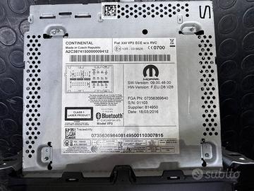 Autoradio Originale Continental per Fiat 500 VP2 Vendo autoradio originale Continental, modello VP2, prodotta in Repubblica Ceca. Si tratta di un'unità completa con display, ideale per chi cerca un ricambio o un upgrade per la propria vettura. Compatibilità: • Fiat 500 VP2 ECE con RVC (Rear View Camera, ovvero predisposizione per telecamera posteriore). Caratteristiche Principali: • Marca: Continental (Made in Czech Republic) • Modello: Fiat 500 VP2 ECE w/ RVC • Codice Prodotto: A2C387415000009412 • Part Number (Mopar/FGA): 07356369840 • Versione Hardware: F.EU.D8.V28 • Versione Software: 09.00.48.00 • Bluetooth: Sì, modulo Bluetooth integrato (ID: STD-92GB0F9A3F3) • Funzionalità: Radio, Media, Settings, Phone, Apps. Dotata di manopole per volume e navigazione/invio. • Data di Produzione: 18/03/2016 • Certificazioni: CE0700, FCC ID, Laser Product Class 1. L'autoradio si presenta in buone condizioni estetiche e funzionali, come visibile dalle foto. Perfetta per chi vuole ripristinare l'originalità della propria Fiat 500 o sostituire un'unità difettosa.
