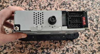 autoradio originale Continental per Fiat Panda. Include funzionalità multimediali, radio AM/FM e connessione Bluetooth. È dotata di comandi fisici per gestire il volume, le chiamate e la selezione delle stazioni. Il sistema permette l'abbinamento di dispositivi Bluetooth per la riproduzione musicale e la gestione delle chiamate.