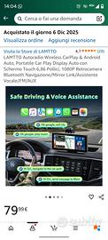 Il dispositivo supporta la connessione wireless per Apple CarPlay e Android Auto, permettendo di utilizzare navigazione, musica e assistente vocale direttamente dallo schermo.