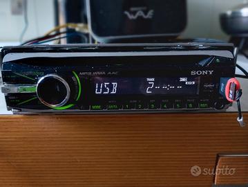 Autoradio Sony CDX-GT444U 1DIN con lettore CD, porta USB frontale e ingresso AUX. Offre una potenza massima di 4x52 Watt a 4 Ohm, supporto MP3/WMA/AAC, FLAC, radio RDS, EQ3 (equalizzatore a 3 bande) e una uscita pre-out a 2V. Autoradio perfettamente funzionante, come da foto. CHIAVETTA USB DEMO E ALTOPARLANTI, NON COMPRESI NELLA VENDITA.