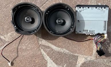 Vendo autoradio JVC completa e funzionante con cablatura e fusibili annessi, plug&play, comprensiva di due box Cento CX 165 4ohm con flangia di adattamento e viti di fissaggio, connettorizzati plug&play. Box non grattano, radio legge CD chiavetta e aux. Possibilità di usare Bluetooth (10€ che si collega via aux, su amazon). Vendo causa cambio auto