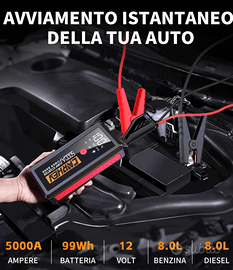 【AVVIATORE AD ALTA POTENZA】Con una corrente di picco fino a 5000 Ampere, CARHEV Avviatore di Emergenza per Auto può avviare qualsiasi veicolo a 12V in pochi secondi (fino a 8.0L a benzina e 8.0L a diesel). È adatto per camion, moto, motoslitte, ATV, UTV, tosaerba, yacht e molto altro. Avvia l'auto rapidamente, anche in ambienti estremi (-20°C ~ 60°C), senza bisogno di attendere l'assistenza stradale!