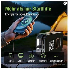 Avviatore Batteria Auto con Compressore, Avviatore Emergenza per Auto/Moto 12V (Tutti Gas 12L Diesel) Booster Avviamento LED/Ricarica USB-C