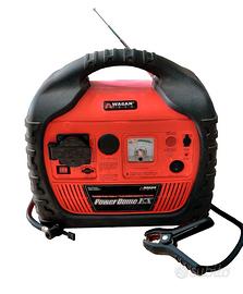 Avviamento di emergenza per batterie auto, fonte di alimentazione portatile. Multifunzione con compressore, faro LED, radio, voltimetro, inverter di potenza, presa DC, jack 3.5 e USB