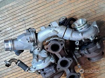 VENDO BLOCCO BITURBO COMPLETO DI TETTE E DUE LE TURBINE GRANDE E PICCOLA , COLLETTORE DI SCARICO E SENSORI PER MINI O BMW 2.0D 150CV , TUTTO QUELLO CHE VEDETE IN FOTO E’ PERFETTAMENTE FUNZIONANTE ,TOLTO DA UNA VETTURA CON 68.000KM , MANCANTE DELL’UNITÀ DI VUOTO REGOLAZIONE GEOMETRIA VARIABILE DELLA TURBO GRANDE .VIENE VENDUTA ESATTAMENTE COME E TUTTO QUELLO CHE VEDETE IN FOTO . CODICE RICAMBIO BMW\MINI 11658584200 , IMPRESSO NELLE TURBINE 16319700013 , 17459700015 .