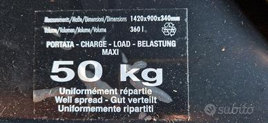 Vendo bagagliera Fapa dimensione: 1420×900×340 mm; volume: 360 litri; portata: 50 kg. comprese barre porta bagagliera sempre marca Fapa. Munita di due serrature con relative chiavi. Consegna diretta.