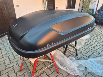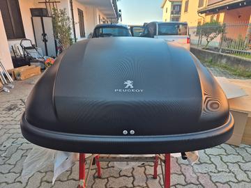 vendo per inutilizzo box da tetto norauto Bermude 200 in condizioni pari al nuovo (usato una volta e poi tenuto in garage). in foto si vedono personalizzazioni con logo Peugeot siccome faccio il grafico e me li ero prodotti. Posso rimuoverli senza problemi e senza lasciare segni