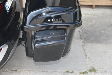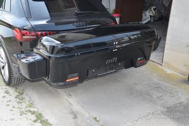 Bagagliera MFT Transport Systems da gancio traino completa del modulo di trasporto, prolunghe laterali, staffa per piegatura della bagagliera per l’apertura del portellone auto, fanaleria completa con portatarga , comoda per passeggino, snowboard/ sci , bici bambini ecc. , peso massimo carico 60 kg.