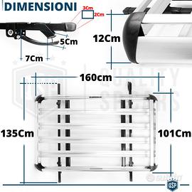Cestello Portapacchi Per FORD, Con Mancorrenti Alti sul Tetto | INCLUSO Barre Portatutto di Fissaggio, Prodotto in ALLUMINIO Silver Dimensioni 160 Cm x 101 Cm x H 12 Cm 12Kg - BARRE Portatutto di Fissaggio INCLUSE - FUNZIONALE | Massima Versatilità di Carico - AERODINAMICO | Frangivento Inclinato - INOSSIDABILE | Resistenza Alle Intemperie - STILE OFF-ROAD | Look Attrattivo Fuoristrada COMPATIBILITÀ: Per FORD, Con CORRIMANO Longitudinali Aperti (Vedi Foto) - Transit, Tourneo Courier (dal 2013) - Ranger 3 T6 (2011-2015) - Kuga MK1 (2008-2012) - Kuga MK2 (dal 2012) - Galaxy 1 (1995-2006) - Grand C-Max 2 (dal 2010) - Escort 4 (1990-2000) - Focus 1 SW (1998-2005) - Focus 2 SW (2004-2011) - Mondeo 1 SW (1996-2000) - Mondeo 2 SW (2000-2007) - Mondeo 3 SW (2007-2014) INFO: Cestello da Tetto TOP di GAMMA nell'ambito Fuoristrada off road, grazie anche alla sua Estetica di qualità eccellente nella Scelta dei Materiali, Rifiniture del Dettaglio, Tatto e Colorazione. Realizzato in Alluminio estruso, è Robusto e Indeformabile, resiste allo Schiacciamento e sopporta carichi pesanti, TESTATO fino a 150 KG INSTALLAZIONE: Facile Installazione. Si Installa mediante Barre Trasversali GIÀ INCLUSE, che si Ancorano sui Corrimano Longitudinali Aperti dell'Auto, mediante 4X Staffe di fissaggio con Sistema ad Avvitamento. Può essere installato anche su Barre Portatutto già esistenti, ma sarà necessario munirsi di un sistema di ancoraggio tra il Cestello e le barre. UTILITA': - Ideale per l'INSTALLAZIONE DI PRATICHE SOVRASTRUTTURE, tra cui: Tende da Tetto, Porta Sci, Portabici, Porta Kayak, Portasnowboard, Porta Go Kart, Porta Tanica, ecc.. - Perfetto per il SUPPORTO DI ILLUMINAZIONI OFF-ROAD Aggiuntive: Faretti LED, Barre LED Luminose, ecc. PER INFO CONTATTARE AL 3927091031 ANCHE LINEA WhatsApp VIA E-MAIL: rtautoitalia2018@libero.it CONSEGNA: - Effettuiamo Spedizioni 24-48H in TUTTA ITALIA - Ritiro in Sede PAGAMENTI: - PayPal - Con Carta - Bonifico Bancario - Alla Consegna