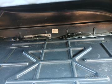 barchino molto capiente fornito di cinghia interna per ancoraggio bagagli e serratura. Si aggancia a qualsiasi portabagagli,