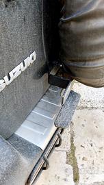 Vendo barra portautensili / oggetti / fari, composto come in foto da due pezzi lavorati da barre opportunamente sagomate e saldate. In ferro verniciata a polvere epossidica, a colore personalizzabile (300eur), o in acciaio inox (350eur). Attacchi direttamente sulla piastra del porta ruota di scorta. Non necessita di ulteriori bucature sulla carrozzeria. Compresa di ferramenta (perni più lunghi, distanziatori e rondelle in gomma).