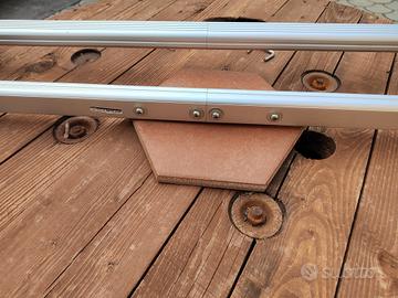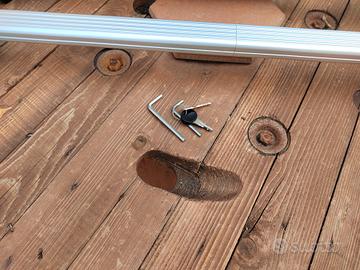Barre da tetto telescopiche (Fabbri) in alluminio per railing integrati ed aperti, con profilo a ponte. Disponibili in finitura alluminio e nera. Assemblate e pronte all’uso con 4 serrature di sicurezza. Predisposte al montaggio di qualsiasi accessorio da tetto. Si presentano in buone condizioni Io lo usavo per l'Audi A4