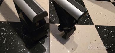 Coppia barre portatutto in lega d'alluminio La Prealpina LP49 24cm, con attacchi specifici per per vetture senza grondina, usate su Audi A6 2014.