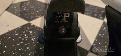 Portatutto con struttura portante in solida lega d’alluminio. Piano di carico rivestito in PVC antiscivolo-antigraffio. Attacchi in lamiera d’acciaio stampata e verniciata con polveri termoindurenti ‘long life’ anticorrosione. Terminale copri-attacchi realizzato in ABS e dotato di serratura con chiave.