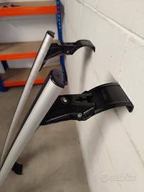 Portatutto con struttura portante in solida lega d’alluminio. Piano di carico rivestito in PVC antiscivolo-antigraffio. Attacchi in lamiera d’acciaio stampata e verniciata con polveri termoindurenti ‘long life’ anticorrosione. Terminale copri-attacchi realizzato in ABS e dotato di serratura con chiave.
